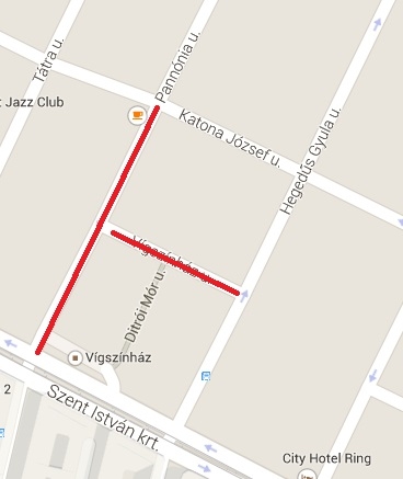 Vígszínház utca a Hegedűs Gyula utca és a Pannónia utca között,