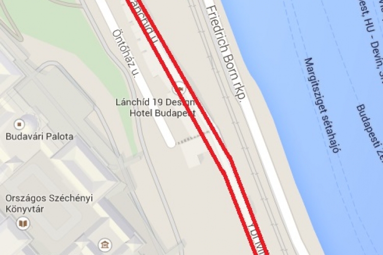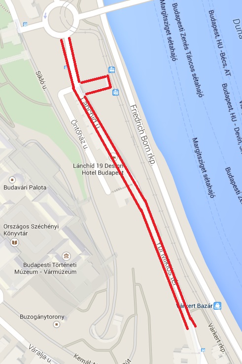 Lánchíd utca mindkét oldalán a Clark Ádám tértől a Várkert bazárig, valamint a Lánchíd utcai parkolóban.