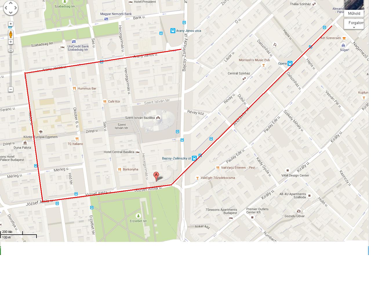 Andrássy út – József Attila utca – Nádor utca – Arany János utca útvonal,