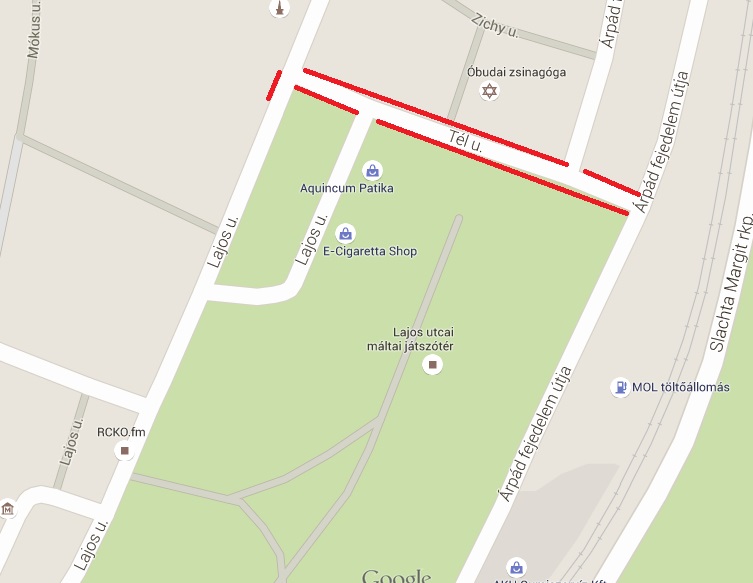 Lajos utca 156-158. szám előtti útszakasz mindkét oldalán.