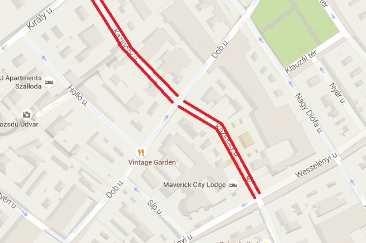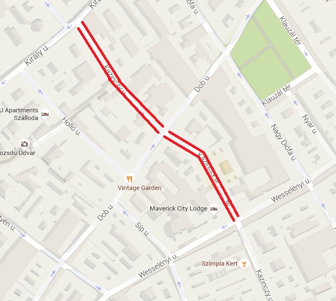 Kazinczy utcát a Király utca és a Wesselényi utca között.