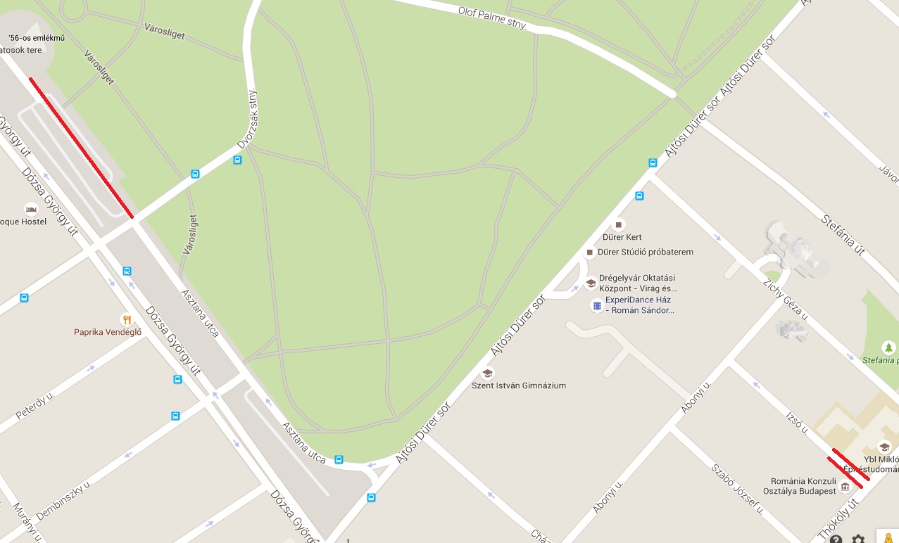 Felvonulási téren a Dvorzsák sétány és az 56-os emlékmű között, a Városliget felőli oldalon,
