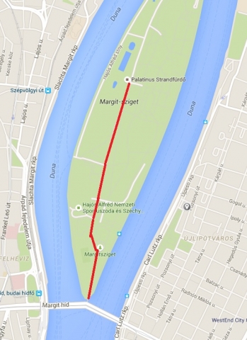 Margit –szigeti főutat a Palatinus strand és a Margit hídi sorompó között.