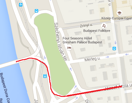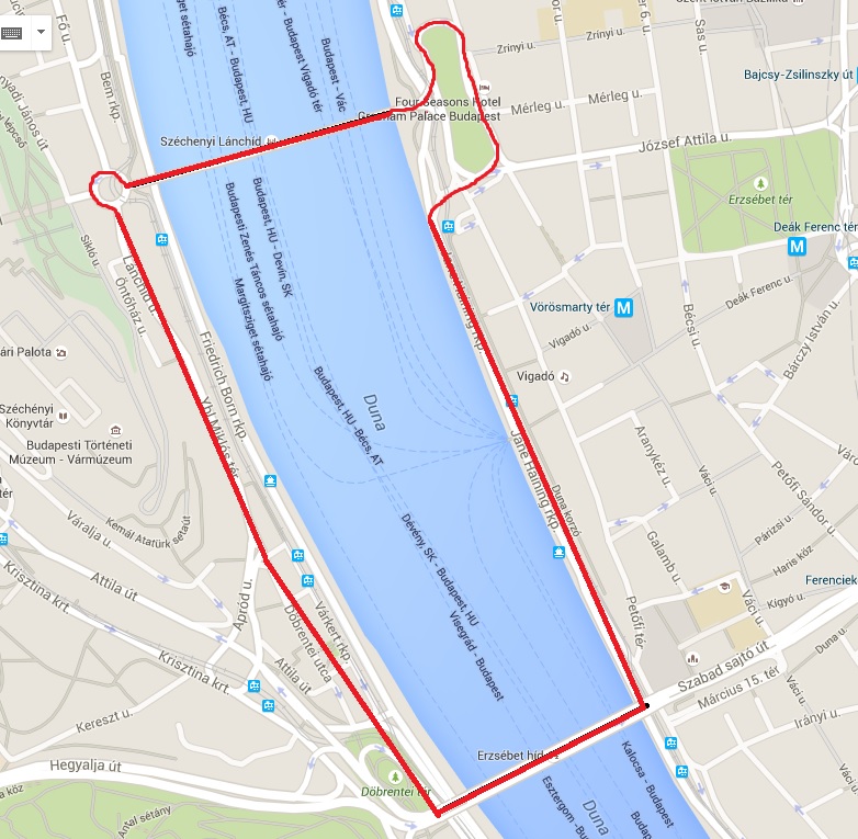 2015. június 6-án 18 óra 30 percig a Budapest V., Széchenyi tér – Budapest I., Clark Ádám tér – Lánchíd utca – Ybl Miklós tér – Döbrentei tér – Erzsébet híd – Budapest V., Március 15. tér – Jane Haining Rakpart – Széchényi tér útvonal.