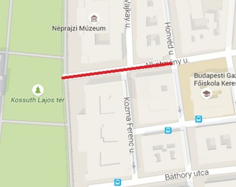 Alkotmány utca mindkét oldalán a Honvéd utca és a Kossuth tér között.