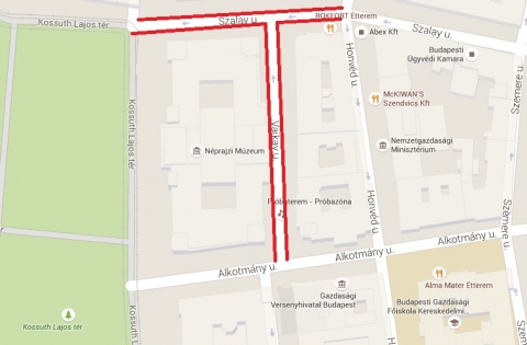Szalay utca mindkét oldalán a Honvéd utca és a Kossuth tér között,