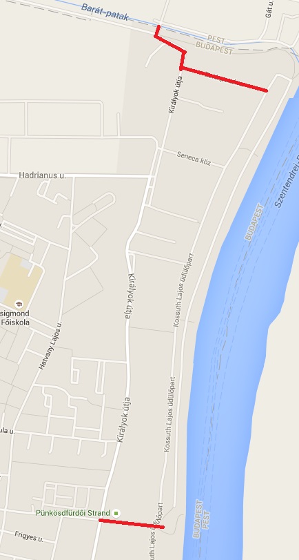 Barátpatak utca a Királyok útja és a Kossuth Lajos üdülőpart között,