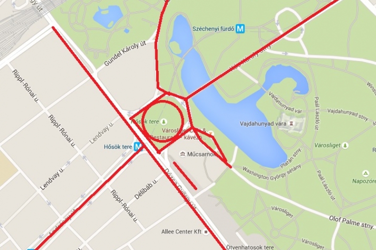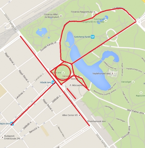 Hősök tere körben, (BKK tömegközlekedés biztosítása mellett)