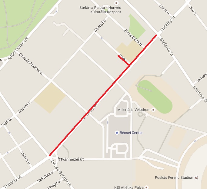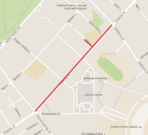 Thököly út a Dózsa György út és a Stefánia út közötti szakaszon.