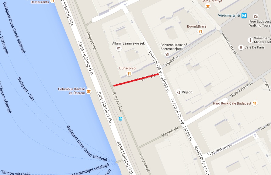 Vigadó tér 3. szám előtti szakaszon 10 gépjármű részére.