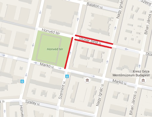 Szemere utca Honvéd tér felőli oldalán a Markó utca és a Stollár Béla utca között,