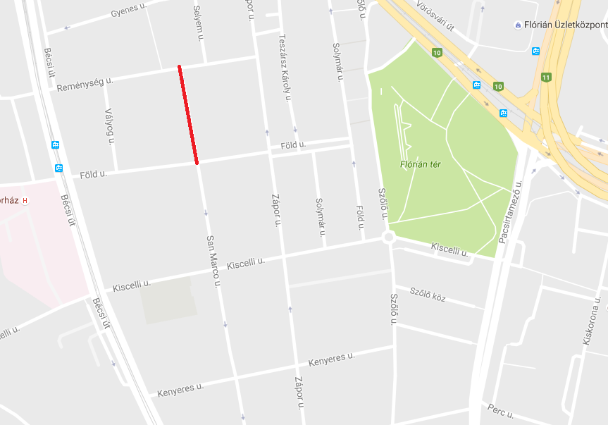 a Budapest III., San Marco utca páratlan oldalán a Reménység utca és a Föld utca között.