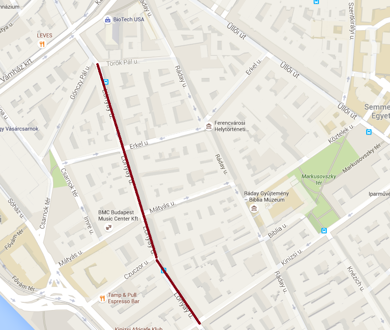 Budapest IX., Lónyay utcában a Kinizsi utca és a Török Pál utca közötti szakaszon