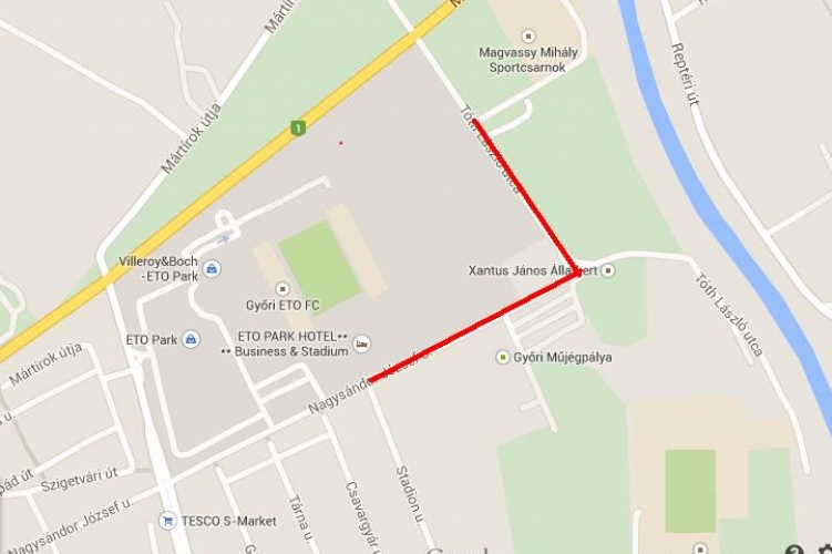 Tóth László utca, a Nagysándor József utca és az Audi Aréna Sportcsarnok között.