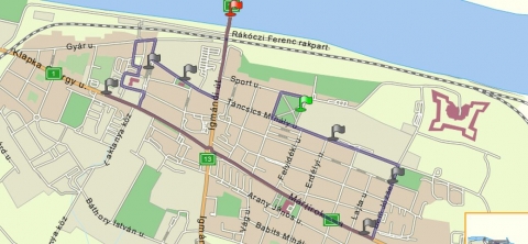 Komárom, Jókai liget – Beöthy Zsolt utca – Mártírok útja – körgeometriás csomópont – Klapka György út – Szent László út – Bajcsy Zsilinszky utca – Igmándi út – Erzsébet-híd közötti útszakasz menetirány szerinti jobb oldali forgalmi sávját.