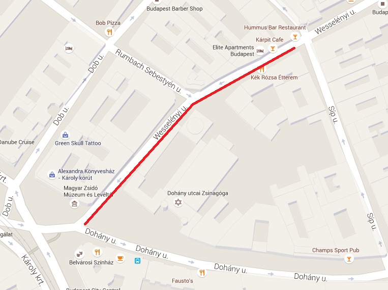 Wesselényi utca páratlan oldalán a 9. számtól a Dohány utcáig.
