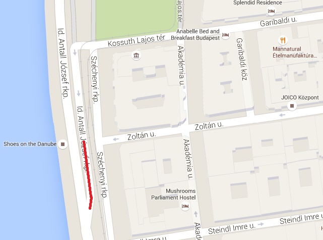 Id. Antal József rakpart Garibaldi utcai felhajtó előtt 50 méter hosszon.