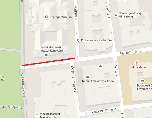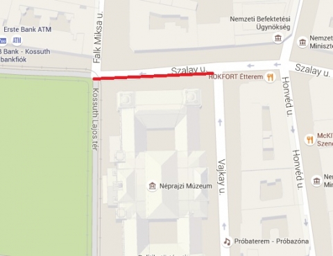 Szalay utca páratlan oldalon a Vajkay utca és a Kossuth tér között.