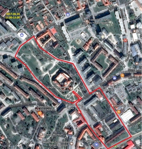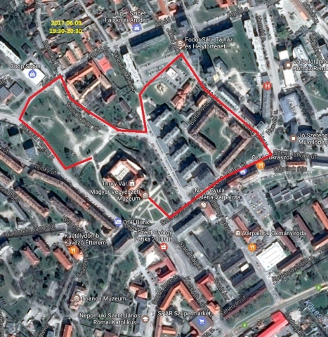 - 2017. június 9-én 19 óra 30 perc és 20 óra 30 perc között a Hunyadi Mátyás tér, a Szent István utca, a Jókai utca, az Árpád utca és a Thury György tér érintésével,