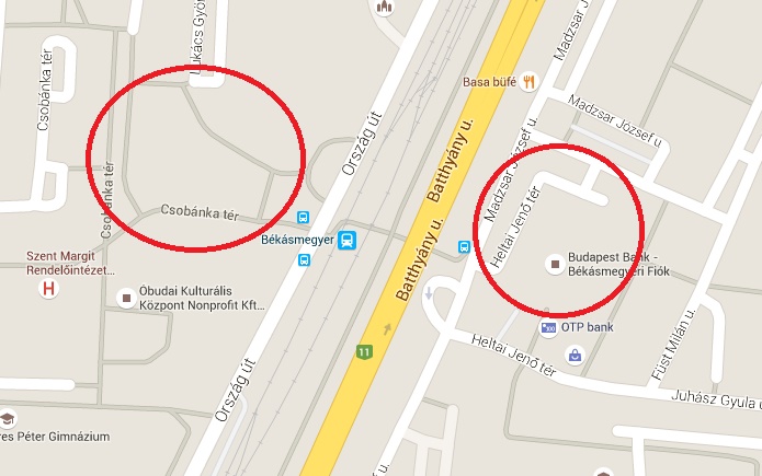 Csobánka téri nagy parkolóban, a parkoló bejáratától jobbra 20 méter hosszan,