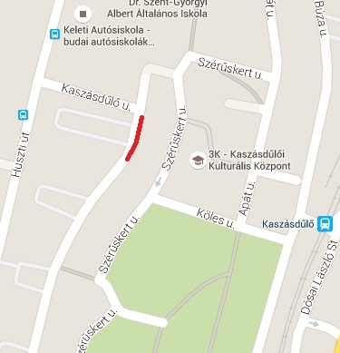 Kaszásdűlő utca 9. szám előtt a Szérűskert utca irányába 20 méter hosszan,
