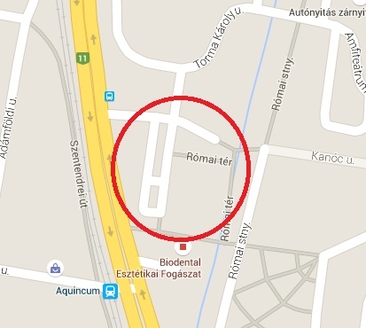 Torma Károly utcában, a Római téri szolgáltatóház melletti parkolóban, a szolgáltatóház homlokzata előtt 20 méter hosszan.