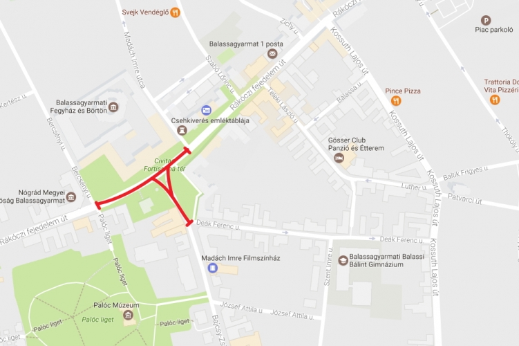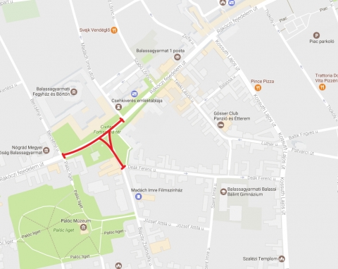 Balassagyarmat belterületén 2017. március 15-én 15 órától 19 óráig lezárásra kerül: