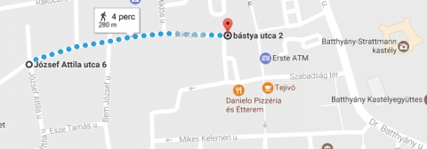 a József Attila utca és a Bástya utca közötti útszakasz.