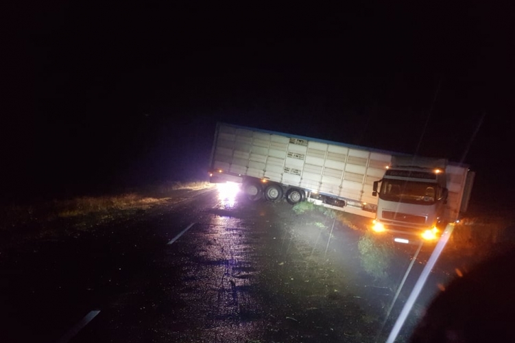 A 65-ös számú főút 18-as kilométerszelvényében korábban egy járműszerelvény árokba hajtott. A tehergépkocsi műszaki mentésének idejére az érintett útszakaszon teljes útlezárás van érvényben.