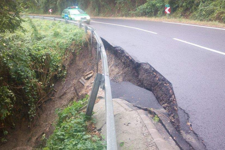 Megcsúszott az úttest, az érintett útszakaszt teljes szélességében lezárták.