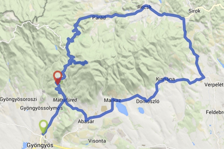 A 24-es számú főút /Gyöngyös, Mátrai út (RAJT) – Mátrafüred - Sástó – Mátraháza – Parád – 24-es számú főút Sirok elágazó – Tarnaszentmária – Kisnána – Domoszló – Markaz – Abasár – Pálosvörösmart – Mátrafüred – Mátraháza – Kékestető (CÉL).