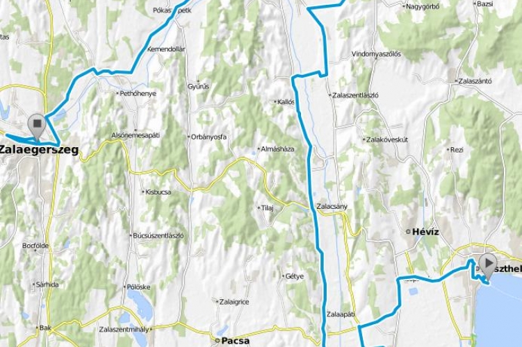 - Keszthely: Csík Ferenc sétány - Borbás Vince sétány - Ady út - Kazinczy út - Erzsébet királyné útja - Park utca - Hunyadi János utca - Kossuth Lajos utca - Kastély utca - Sopron utca - Bástya utca - Pál utca - Georgikon utca